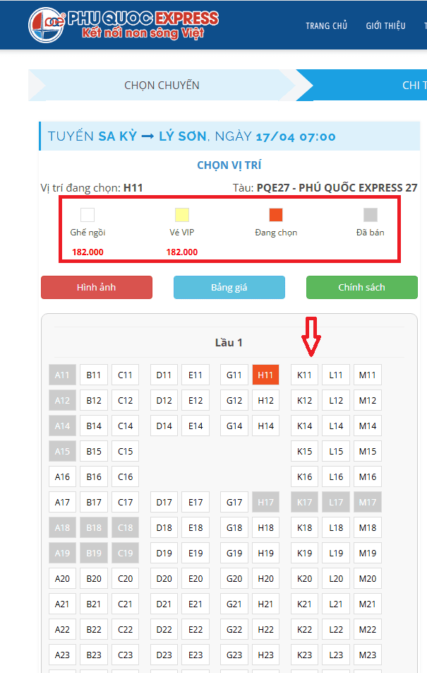 Hướng dẫn chi tiết từng bước đặt vé tàu Sa Kỳ - Lý Sơn tàu Phú Quốc Express trực tuyến chỉ với 3 bước được chọn ghế, thanh toán bảo mật qua cổng onepay và nhận vé điện tử liền tay. Zalo hỗ trợ: 0931546760.