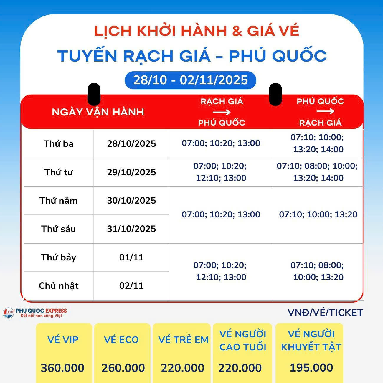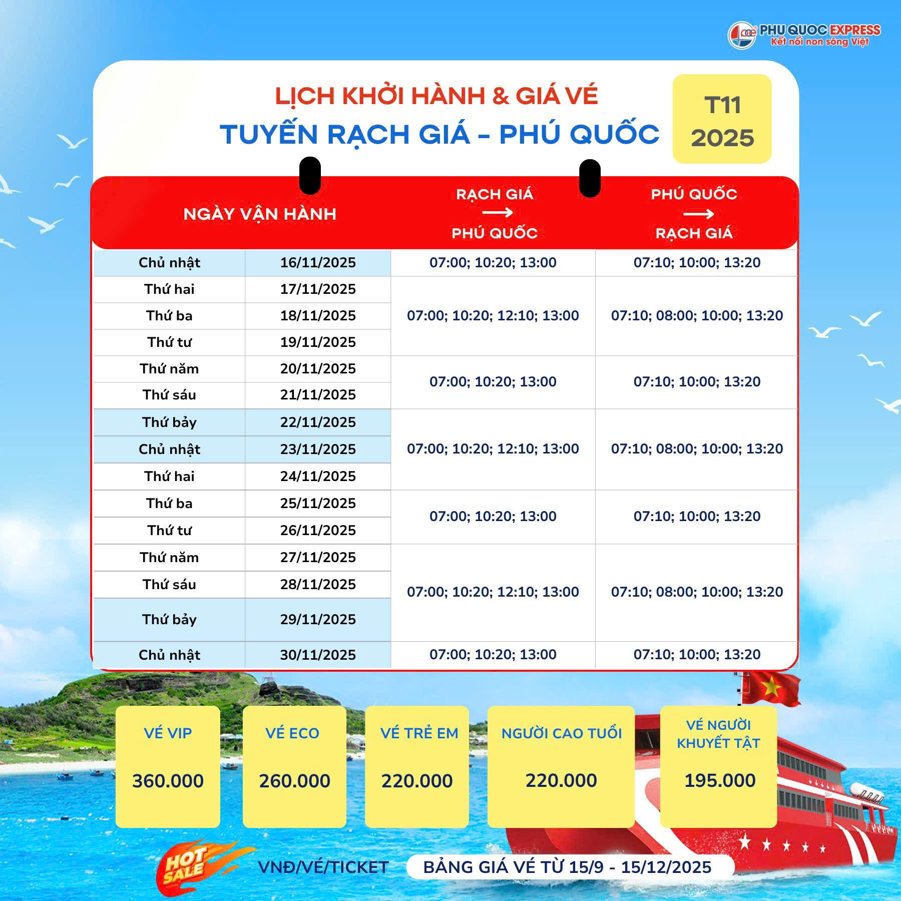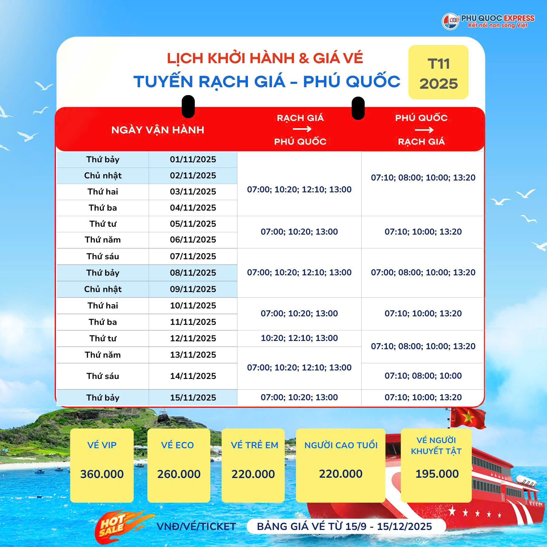 Lịch tàu Rạch Giá - Phú Quốc 11/2025