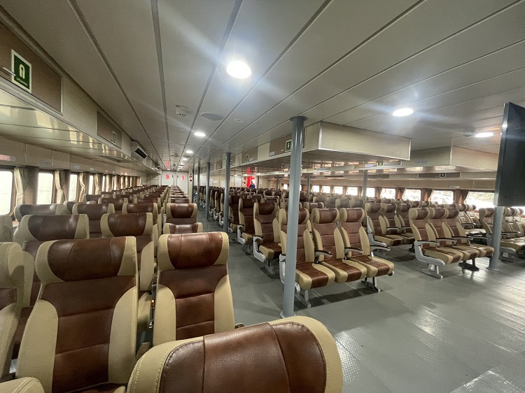 - Tiện nghi: Có khoang VIP, khoang Eco, quầy bar, và khu vực boong tàu ngoài trời cực rộng để check-in ngắm biển.
